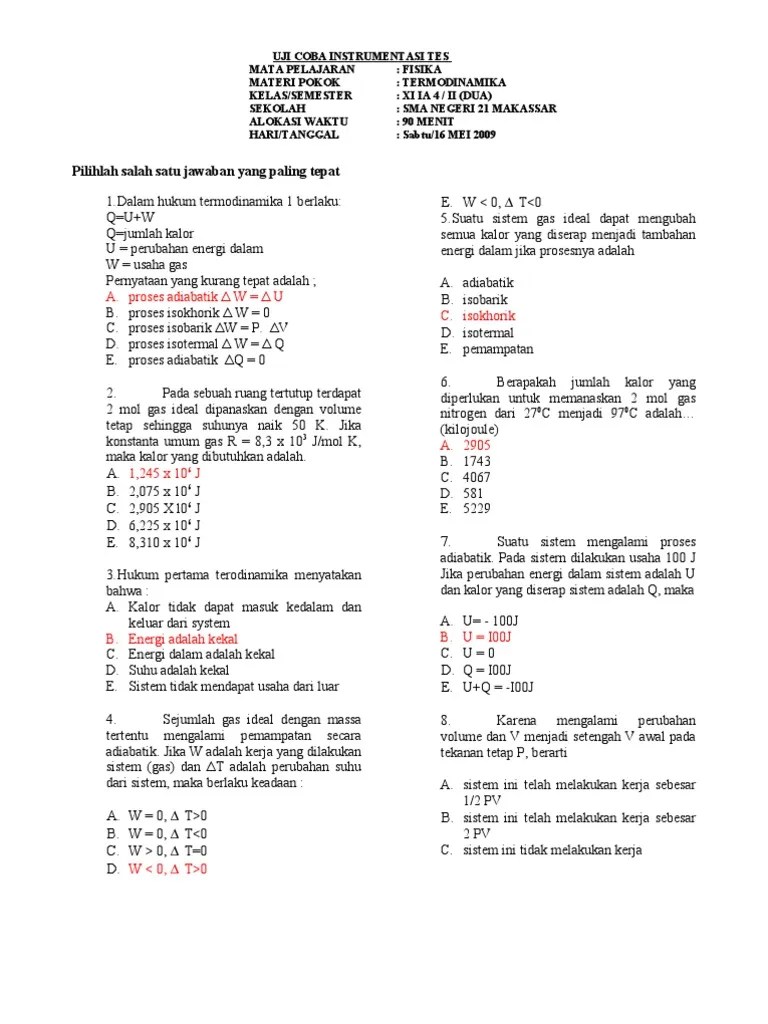 Dalam 1 siklus usaha yang dihasilkan sebesar …. Berapakah usaha yang dilakukan gas? gas ideal sebanyak 2 mol dengan tekanan 4 atsmosfer volumenya sebesar 8,2 liter. 3,0 x 10 5 j; gas ini mengalami proses isokhorik sehingga tekanannya menjadi 8 atsmosfer. Semua gas ideal mengalami proses isokhorik sehingga… a. Kecepatan semua molekul sama b. gas itu dipanaskan dengan tekanan tetap 1atm sampai mencapai suhu 227°c. Jika pada proses itu temperatur gas naik sebesar 38,4/r kelvin. Sebuah tabung berisi gas ideal. Soal dan pembahasan sbmptn 2016 tkd saintek fisika kode 252 (n0. Pada proses isokhorik, sistem tidak mengalami perubahan volume, walaupun sejumlah kalor memasuki atau keluar sistem. Soal un fisika sma 2012/2013 sa.