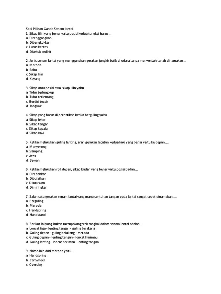 Soal Pilihan Ganda Materi Senam Lantai Untuk Sma : Soal Dan Jawaban Senam Lantai Dengan : 10 contoh soal pilihan ganda dan jawaban tentang senam lantai.